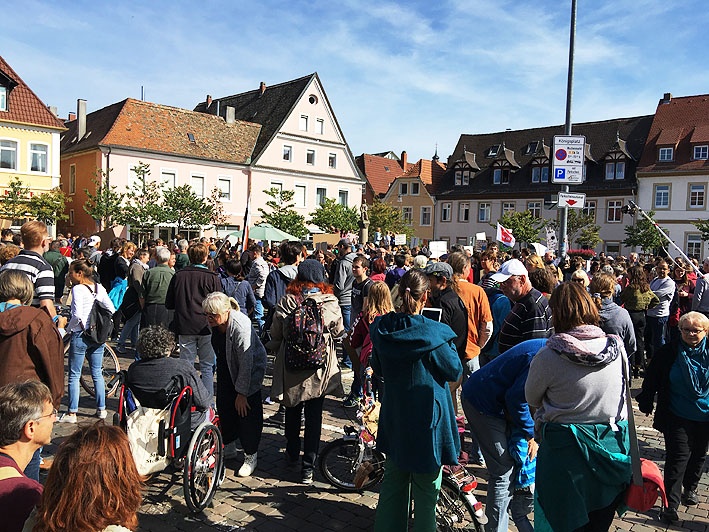 Es war eine machtvolle Demonstration des Willens der Menschen weltweit, denn Millionen waren am Freitag auf die Straße gegangen, um für konsequenten Klimaschutz zu demonstrieren. Über 200 Organisationen hatten in Deutschland dazu aufgerufen, sich an den Schüler-Klimastreiks von “fridys for future” zu beteiligen. Mehr als 1.100 Teilnehmer*innen waren es alleine in Speyer. Sie füllten bei der Schlusskundgebung komplett den an diesem Tag autofreien Königsplatz, auch bekannt als Marktplatz.Das “Zukunftsforum Speyer” hatte organisiert, dass sich etwa 20 Vereine, Organisationen und Geschäfte am internationalen “ParkingDay” beteiligten, um auf dem Königsplatz ein Bürgerfest zu feiern.