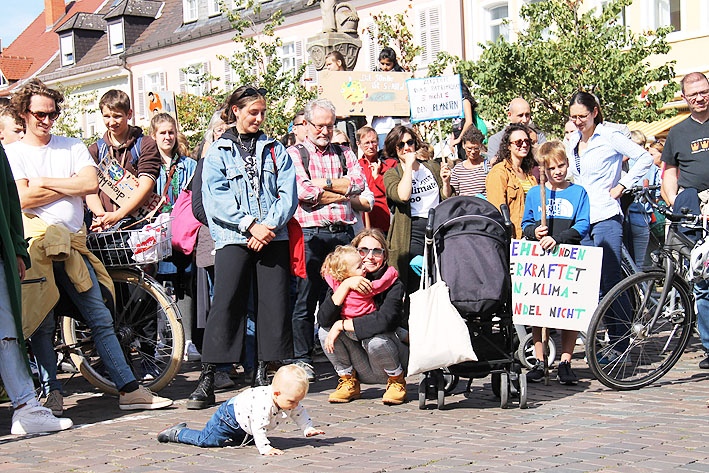 “Wir sind hier, wir sind laut, weil ihr uns die Zukunft klaut”, skandierten die jungen Menschen, die am Klimastreik teilnahmen. Die beiden großen Kirchen hatten dazu aufgerufen, sich an den Demonstrationen zu beteiligen, so dass sich auch viele Ältere dem die ganze Maximilianstraße füllenden Demonstrationszug angeschlossen hatten, unter ihen Kirchenpräsident Christian Schad und Generalvikar Andreas Sturm. Startpunkt der Demo war diesmal vor dem Adenauerpark. Auch sie forderten den Stopp der Kohle als Energieträger.