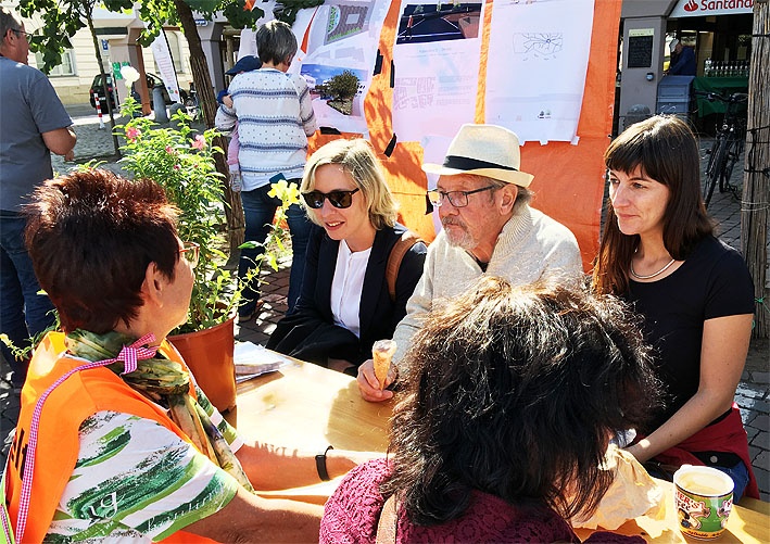 Gut gelaunt verweilten auch Oberbürgermeisterin Stefanie Seiler, Bürgermeisterin Monika Kabs sowie Klimaschutzmanagerin Fabienne Körner – sie brachte Brezeln mit – auf dem autofreien Platz. Zahlreiche Ratsmitglieder machten sich ein Bild vom Geschehen.