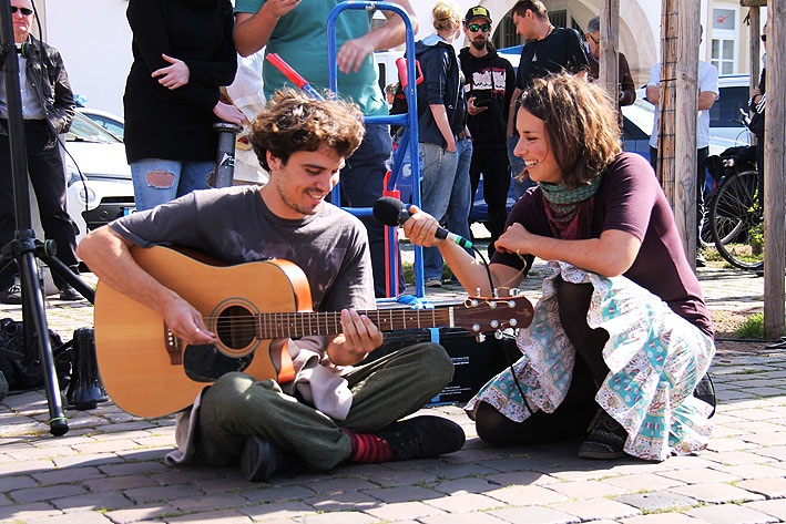 Einen tollen Schlusspunkt setzte die Trommelgruppe “Afrabato” unter Leitung von Rainer Körber. Die Rhythmen gingen in die Beine, so dass selbst Wolfgang German, Initiator des “Grynen Bands”, der sich im Vorfeld kritisch zu den Königsplatz-Plänen des Zukunftsforums geäußert hatte, tanzend gesehen wurde. (Fotos: ks)